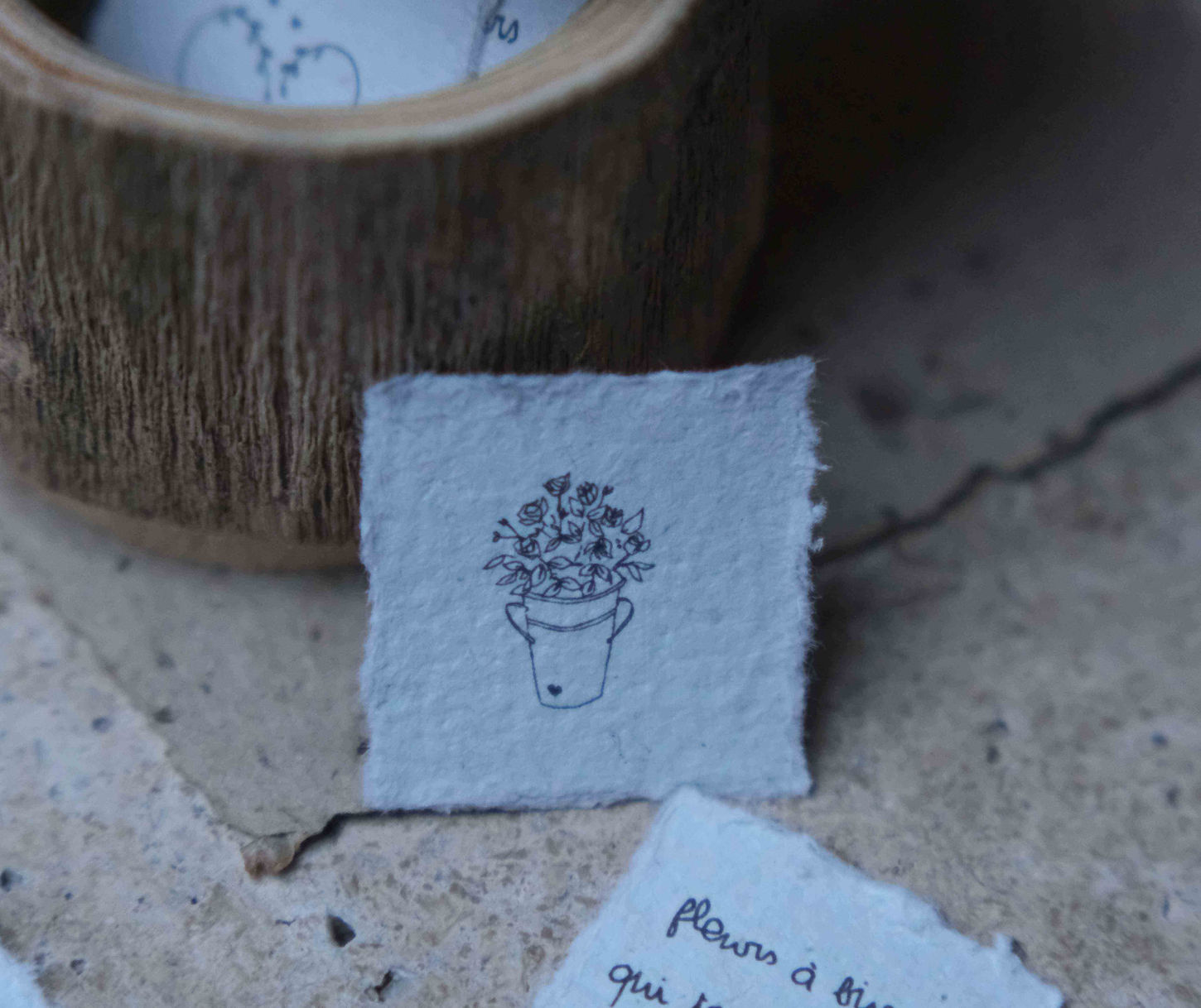 Chaque écrin est façonné à la main, en bois naturel, avec un savoir-faire patient et minutieux. À l’intérieur, les mots reposent sur un papier artisanal fait main, créé spécialement pour sublimer l’écriture et lui offrir une présence presque intemporelle